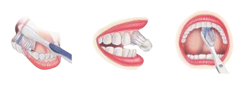 Bei der Bass-Technik werden die Borsten der Zahnbürste in einem 45-Grad-Winkel am Zahnfleischrand angesetzt. Die Bürste wird leicht auf der Stelle gerüttelt, um den Zahnbelag zu lockern. Danach wird die Zahnbürste mit einer Drehbewegung in Richtung Zunge geführt. Dabei bitte darauf achten, dass nicht zu viel Druck ausgeübt wird, um das Zahnfleisch nicht zu verletzen. - Rotationstechnik
